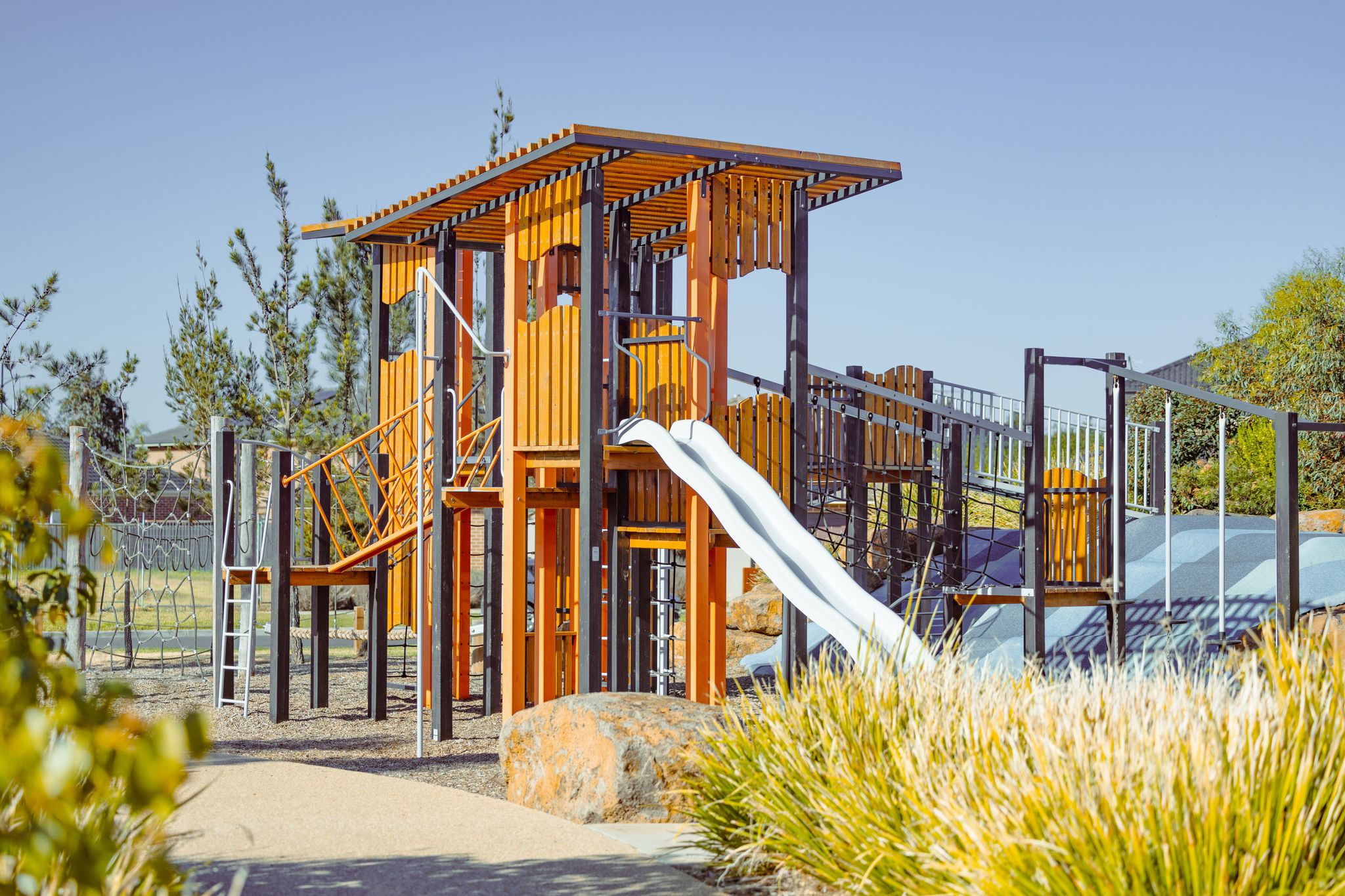 Overlooking the beautiful Kororoit Creek and adjacent to the Jarai Rain Garden, Gibson Reserve is designed with inclusivity in mind. The park features accessible play areas, seesaws, cubby houses, swing sets, and balance beams for everyone to enjoy. Plus BBQ facilities for those family picnics on the weekend.